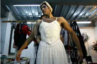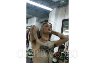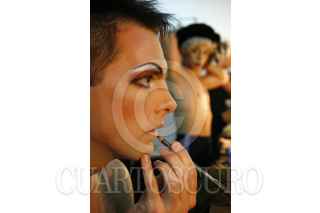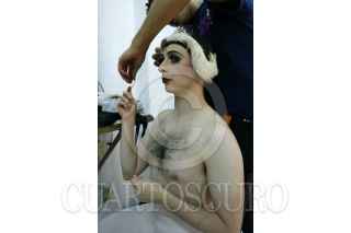 SAN LUIS POTOSÍ, SLP.04OCTUBRE2007.- La compañía Trockadero de Monte Carlo se prepara para salir a escena con sus parodias de obras clásicas de ballet, donde hombres interpretan papeles femeninos. Piezas como El lago de los cisnes, Paquita y hasta el jarabe tapatío fueron presentados en el Teatro de la Paz en el marco del Festival Inernacional de Danza Contemporánea. FOTO: PAOLA HIDALGO/CUARTOSCURO.COM