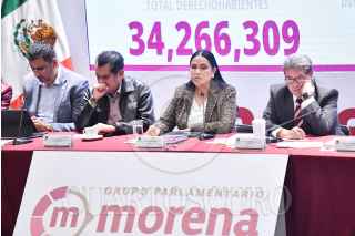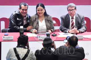 CIUDAD DE MÉXICO, 31ENERO2025.- Ariadna Montiel, secretaria del Bienestar, durante la segunda reunión plenaria del grupo parlamentario de Morena previo al segundo periodo de sesiones ordinarias de la LXVI Legislatura, realizada en el Auditorio Aurora Jiménez de la Cámara de Diputados. La acompañan: Sergio Gutiérrez, presidente de la mesa directiva, y Ricardo Monreal, coordinador del grupo parlamentario de Morena. FOTO: MARIO JASSO/CUARTOSCURO.COM
