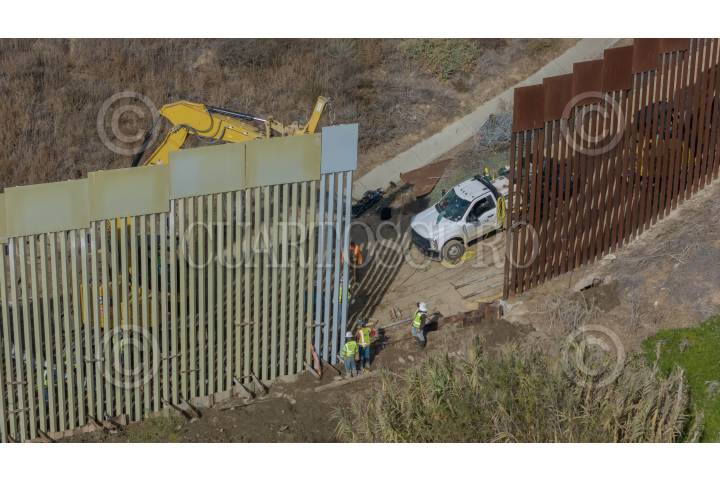 TIJUANA BAJA CALIFORNIA 31ENERO2025.- Después de que Donald Trump asumió el cargo como Presidente de los Estados Unidos, en su primer día de gobierno dio continuación a la reconstrucción del muro fronterizo que divide a México del país vecino, la cual había iniciado en el año 2023 y llevaba 8 meses detenida aproximadamente. Desde el 20 de enero trabajadores estadounidenses se encuentran remplazando con maquinaria el viejo muro por vallas de 10 metros de altura, además de que también están reparando y reforzando las zonas desgastadas. Los trabajadores se encuentran en la zona fronteriza de Playas de Tijuana a la altura de la Plaza Monumental en el área especial de conservación “Cañada de los Sauces Norte”. En ambas partes de la frontera se encuentran autoridades de seguridad resguardando la zona, del lado mexicano es la Guardia Nacional quien está vigilando el área. Estas acciones se suman a las medidas de contención que el gobierno estadounidense tomó para evitar el flujo migratorio de personas no documentadas. FOTO: OMAR MARTÍNEZ/CUARTOSCURO.COM