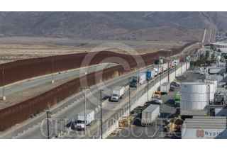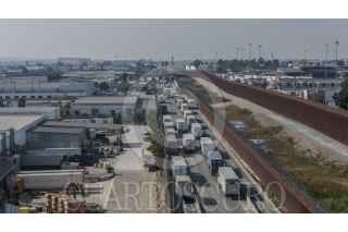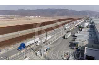 TIJUANA BAJA CALIFORNIA 31ENERO2025.- Fila de tractocamiones en el acceso a la garita aduana de Otay Mesa. Estados Unidos dio a conocer a través de la portavoz de la Casa Blanca, Karoline Leavitt, que a partir del 1 de febrero, podría aplicar aranceles del 25% a productos importados de México. Esta medida forma parte de la estrategia del presidente Donald Trump para presionar a México a frenar la violencia y el tráfico de droga. La implementación de estos aranceles puede generar un aumento en los precios de productos importados y afectar tanto a consumidores como a empresas estadounidenses que dependen de insumos provenientes de México. FOTO: OMAR MARTÍNEZ/CUARTOSCURO.COM