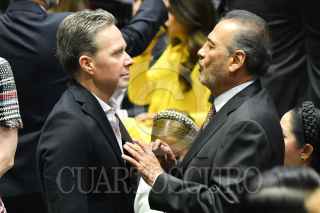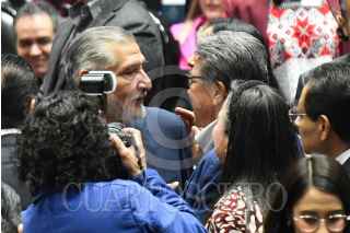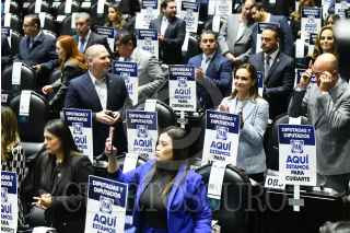 CIUDAD DE MÉXICO, 01FEBRERO2025.- Legisladores del PAN, muestran cartulinas con la frase "diputadas y diputados del PAN, aquí estamos para defenderte/cuidarte" durante la instalación el Segundo Periodo de Sesiones Ordinarias del Segundo Año de Ejercicio de la LXVI Legislatura del Congreso de la Unión, realizado en el salón de plenos de la Cámara de Diputados. FOTO: MARIO JASSO/CUARTOSCURO.COM