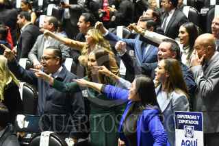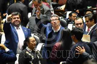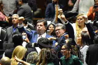 CIUDAD DE MÉXICO, 01FEBRERO2025.- Con 346 votos a favor y 90 en contra fue aprobada en lo general la reforma al INFONAVIT, durante la sesión ordinaria del Segundo Año de Ejercicio de la LXVI Legislatura del Congreso de la Unión de la Cámara de Diputados. En la imagen, Pedro Haces, diputado de Morena y Ricardo Monreal, coordinador del grupo parlamentario de Morena en diputados, celebran la aprobación. FOTO: MARIO JASSO/CUARTOSCURO.COM