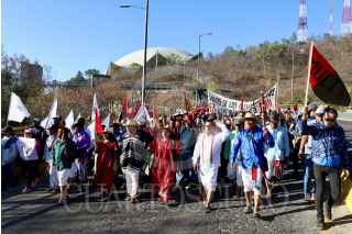 OAXACA DE JUÁREZ, OAXACA, 02FEBRERO2025.- Cientos de militantes del Movimiento de Unificación y Lucha Triqui marcharon a la capital de Oaxaca para exigir justicia por los 17 asesinatos de militantes que se han registrado durante el gobierno del morenista Salomón Jara Cruz. Los manifestantes pidieron a las autoridades realizar las investigaciones correspondientes y restablecer la paz en la zona triqui. FOTO: CAROLINA JIMÉNEZ /CUARTOSCURO.COM