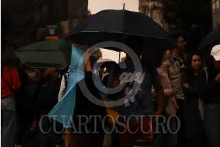CIUDAD DE MÉXICO, 02FEBRERO2025.- Algunas personas se intentan cubrir de la lluvia utilizando paraguas e impermeables. FOTO: DANIEL AUGUSTO/ CUARTOSCURO.COM
