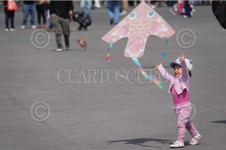 CIUDAD DE MÉXICO, 03FEBRERO2025.- Una niña juega con un papalote en la plancha del Zócalo. FOTO:GRACIELA LÓPEZ /CUARTOSCURO.COM