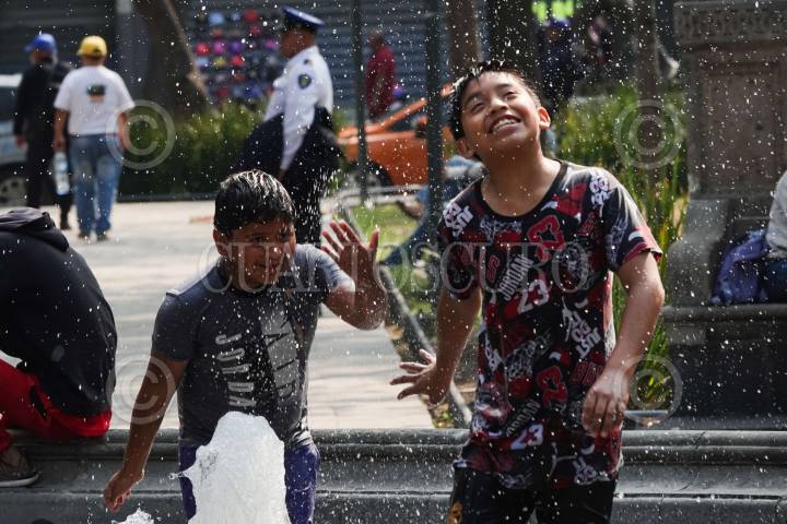 CIUDAD DE MÉXICO, 03FEBRERO2025.- Durante el puente, niños juegan en las fuentes de la Alameda Central. FOTO:GRACIELA LÓPEZ /CUARTOSCURO.COM