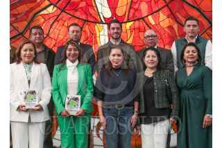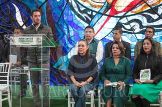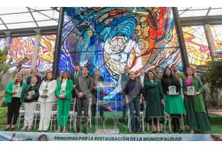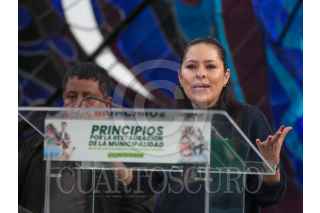 TOLUCA, ESTADO DE MÉXICO, 03FEBRERO2025.- Karen Castrejón Trujillo, dirigente nacional del Partido Verde Ecologista y José Alberto Couttolenc líder estatal del PVEM presentaron los Principios por la Restauración de la Municipalidad en el Estado de México, y estuvieron acompañados por presidentes municipales, regidores y diputados locales. FOTO: CRISANTA ESPINOSA AGUILAR /CUARTOSCURO.COM