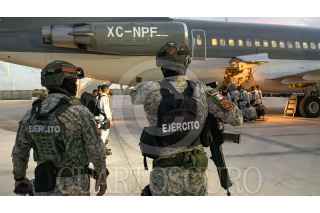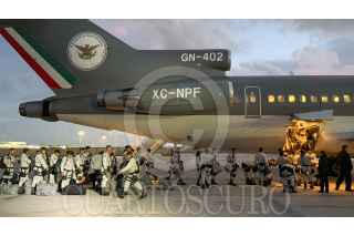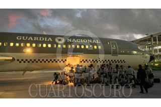 CANCÚN, QUINTANA ROO, 04FEBRERO2025.- Elementos de la Guardia Nacional partieron durante las primeras horas del aeropuerto de Cancún hacia la frontera norte a fin de reforzar los trabajos de seguridad tras los acuerdos entre el gobierno mexicano y estadounidense para evitar la aplicación del 25?aranceles. FOTO: ELIZABETH RUIZ/CUARTOSCURO.COM