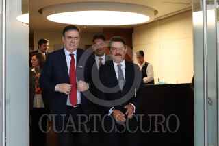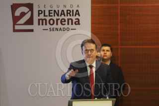 CIUDAD DE MÉXICO, 04FEBRERO2025.- Marcelo Ebrard, secretario de Economía y el senador de Morena, Ignacio Mier, salen del auditorio donde se lleva a cabo segunda plenaria del partido. FOTO: DANIEL AUGUSTO/ CUARTOSCURO.COM