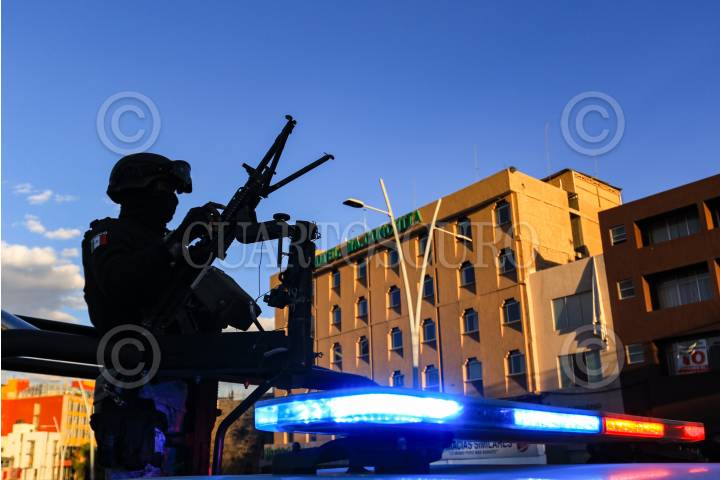 ZACATECAS, ZACATECAS, 04FEBRERO2025.- Un hombre perdió la vida luego de un ataque armado cuando caminaba en pleno centro de la capital zacatecana. Alrededor de las 17:30 horas se reportaron al sistema 911 detonaciones de armada de fuego, por lo que elementos policiacos se dieron cita a la zona de la Plaza Bicentenario. Al llegar al lugar un hombre corría con una arma de alto poder, mientras otro yacía con heridas de bala sobre el puente peatonal que cruza el bulevar metropolitano. Policías municipales intentaron dar alcance al presunto responsable pero logró darse a la fuga después de correr por los callejones de la colonia Pánfilo Natera. Al lugar llegaron paramédicos de Policía Estatal pero ya no contaba con signos vitales la víctima del ataque. Gran movilización de seguridad se presentó en toda la zona ya que es la de mayor tránsito peatonal y de flujo de transporte público. FOTO: GENARO NATERA /CUARTOSCURO.COM