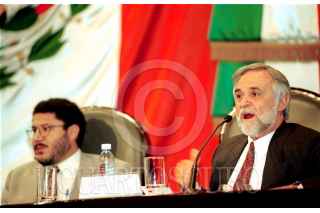 Martí Batres líder de la fracción parlamentaria del PRD organizo y participo en el foro "El papel del Congreso en el marco de la transición mexicana", en el salón verde de la Cámara de Diputados. Con el Enrique Semo (Der). FOTO: Victoria Valtierra/CUARTOSCURO.COM