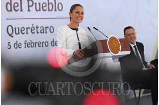 QUERÉTARO, QUERÉTARO, 05FEBRERO2025.- Claudia Sheinbaum Pardo, presidenta de México, encabezó la conferencia de prensa matutina en el estado de Querétaro con motivo de la celebración del 108 aniversario de la promulgación de la Constitución Mexicana. FOTO: PRESIDENCIA/CUARTOSCURO.COM
