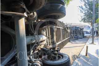 CIUDAD DE MÉXICO, 05FEBRERO2025.- Un trailer cayó de un puente vehicular en Periférico y Miguel Bernard, colonia 7 Maravillas, en la alcaldía Gustavo A. Madero. FOTO: ROGELIO MORALES/CUARTOSCURO.COM