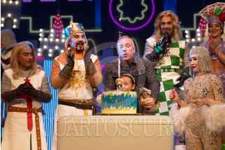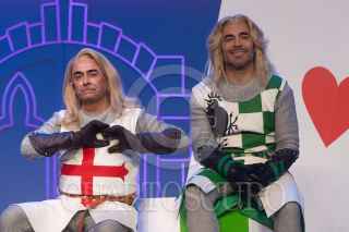 CIUDAD DE MÉXICO, 05FEBRERO2025.-Adal Ramones y Omar Chaparro durante la presentación de la comedia musical "Spamalot", basada en el clásico cinematográfico de Monty Python, próximo a estrenarse en el Centro Cultural Teatro 1. FOTO:EDGAR NEGRETE LIRA /CUARTOSCURO.COM
