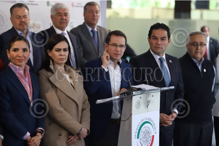 CIUDAD DE MÉXICO, 05FEBRERO2025.- Ricardo Anaya, y la bancada del PAN que él encabeza, realizaron una conferencia de prensa previo al inicio de la sesión ordinaria en el Senado. FOTO: DANIEL AUGUSTO/ CUARTOSCURO.COM