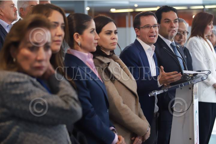 CIUDAD DE MÉXICO, 05FEBRERO2025.- El senador panista, Ricardo Anaya, acompañado de los integrantes de su bancada, realizaron una conferencia de prensa en el Senado. FOTO: DANIEL AUGUSTO/ CUARTOSCURO.COM