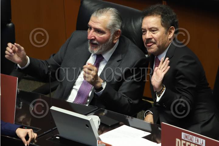 CIUDAD DE MÉXICO, 05FEBRERO2025.- Los senadores morenistas, Adán Augusto López e Ignacio Mier, durante la sesión ordinaria del Senado. FOTO: DANIEL AUGUSTO/ CUARTOSCURO.COM