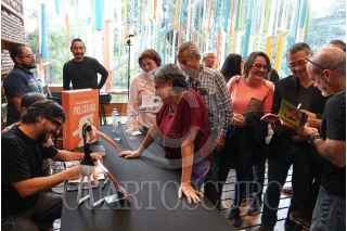 CIUDAD DE MÉXICO, 06FEBRERO2025.- Los caricaturistas Paco Calderón y Chavo del Toro durante la presentación del libro "Todos los hombres de la Presidenta", realizada en la Cafetería Porrúa Miguel Hidalgo. FOTO: GRACIELA LÓPEZ/CUARTOSCURO.COM