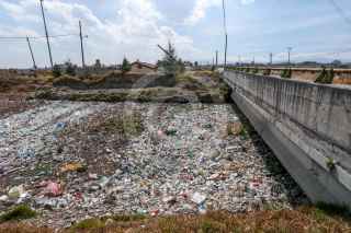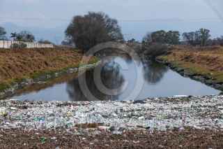 TOLUCA, ESTADO DE MÉXICO, 06FEBRERO2025.- En un tramo del río Lerma que pasa por la carretera Toluca-Temoaya se puede observar la acumulación de basura y sobre todo PET. FOTO: CRISANTA ESPINOSA AGUILAR /CUARTOSCURO.COM