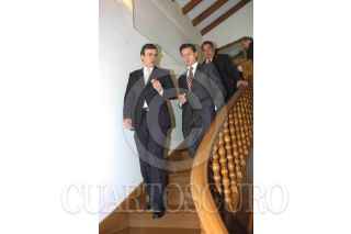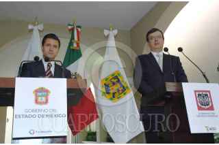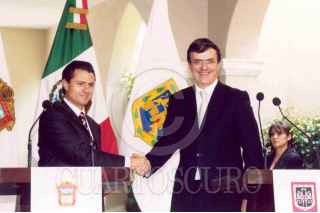 MÉXICO, D.F., 04OCTUBRE2007.- Enrique Peña Nieto, gobernador del Estado de México, y Marcelo Ebrard Casaubon, jefe de gobierno del Distrito Federal, se reunieron para conocer el avance de las obras metropolitanas que se realizan en el Valle de México. FOTO: CUARTOSCURO.COM