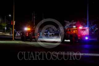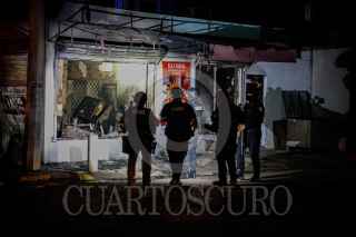 CULIACÁN, SINALOA, 06FEBRERO2025.- Tras una persecución a balazos, una camioneta se impactó contra un negocio de comida asiática en la colonia Revolución de Culiacán, resultando en la muerte calcinada de un hombre. Los hechos ocurrieron sobre el Boulevard Agricultores, en la esquina con la calle Tierra y Libertad, cuando vecinos reportaron una balacera al número de emergencias 911. Según los datos recabados, la camioneta perseguida por sujetos armados perdió el control tras recibir múltiples disparos y se incendió junto con el establecimiento de sushi. La situación generó minutos de tensión y caos en el sector oriente de la capital sinaloense, con una intensa movilización de cuerpos de emergencia y seguridad, ya que se reportaron al menos otros dos ataques a balazos en la zona. FOTO: JOSÉ BETANZOS/CUARTOSCURO.COM