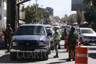 CIUDAD JUÁREZ, CHIHUAHUA, 07FEBRERO2025.- Autoridades mexicanas desplegaron operativos de seguridad en los cruces internacionales de Ciudad Juárez, donde la Guardia Nacional y el Ejército realizan inspecciones a vehículos y pasajeros. La medida, ordenada por la presidenta Claudia Sheinbaum, busca reforzar la seguridad, el control migratorio y la lucha contra el tráfico de drogas en la frontera con EE.UU. FOTO: CARLOS SÁNCHEZ COLUNGA/CUARTOSCURO.COM