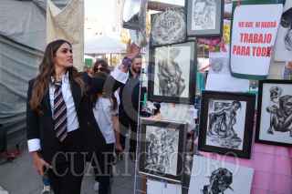 CIUDAD DE MÉXICO, 07FEBRERO2025. La alcaldesa de Cuauhtémoc, Alessandra Rojo de la Vega junto a la encargada de cultura de la demarcación Alejandra Sánchez González recorren la Feria de Arte Independiente a Cielo Abierto (FERAL), que estara instalada en el Monumento a la Madre los días 7, 8 y 9 de febrero, donde se concentrarán proyectos, iniciativas y galerías de arte independiente. FOTO: EDGAR NEGRETE LIRA/CUARTOSCURO.COM