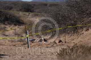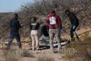 CIUDAD JUÁREZ, CHIHUAHUA, 07FEBRERO2025.- Dos cuerpos fueron encontrados en un predio cercano a la carretera Samalayuca-San Jerónimo, luego de que la Guardia Nacional rastreara una camioneta robada. Uno de los cadáveres presentaba signos de tortura y la extracción del corazón, mientras que el otro tenía múltiples impactos de bala. Las autoridades aún no han identificado a las víctimas, pero la Fiscalía General del Estado ya investiga el caso. FOTO: CARLOS SÁNCHEZ COLUNGA/CUARTOSCURO.COM