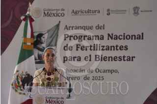 CUITZEO, MICHOACÁN, 07FEBRERO2025.- Claudia Sheinbaum, presidenta de México, encabezó el arranque del Programa Nacional de Fertilizantes para el Bienestar en Cuitzeo, Michoacán, para el apoyo a las y los agricultores michoacanos. FOTO: PRESIDENCIA/CUARTOSCURO.COM