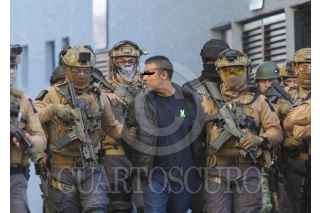 TOLUCA, ESTADO DE MÉXICO, 07FEBRERO2025.- Derivado de las acciones del Operativo Enjambre fue detenido en Valle de Bravo Pedro Luis “N” alias “Wicho” ex presidente municipal electo de Santo Tomás de los Plátanos, quien se dio a la fuga después de rendir protesta, está acusado de diversos delitos entre ellos nexos con el crimen organizado. Fue trasladado a la FGJEM y posteriormente a un penal mexiquense. FOTO: CRISANTA ESPINOSA AGUILAR /CUARTOSCURO.COM