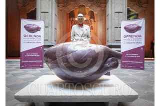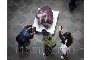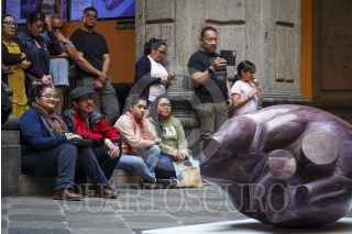 CIUDAD DE MÉXICO, 08FEBRERO2025.- El escultor mexicano de origen filipino Eduardo Olbés encabezó la inauguración de su obra "OFRENDA" en el Colegio San Ildefonso. "OFRENDA" representa un corazón humano elaborado de jaspe rojo del desierto de San Luis Potosí. La dimensión de la pieza, el color, las vetas y densidad asemejan con exactitud en términos anatómicos el órgano del corazón. FOTO: MAGDALENA MONTIEL/CUARTOSCURO.COM