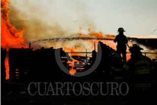 SALTILLO, COAHUILA, 08FEBRERO2025.- La tarde de este sábado se reportó un fuerte incendio de una recicladora de plásticos y madera, en el kilómetro 14 de la carretera Saltillo-Torreón, la fumarola se podía apreciar de cualquier punto de la ciudad capital. Elementos del cuerpo de bomberos realizaron maniobras para controlar el incendio, que sólo quedó en daños materiales. FOTO: ALEJANDRO RODRÍGUEZ/CUARTOSCURO.COM