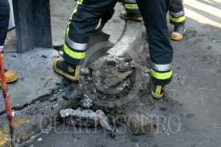 MÉXICO, D.F., 05OCTUBRE2007.- Entre las banquetas de la avenida Balderas y la calle Artículo en la colonia Centro la gente se percato que salía vapor con olor desagradable por lo que llamaron a los bomberos quienes excavaron en el sitio pero no encotraron la fuente de la peste. FOTO: PEDRO MARRUFO/CUARTOSCURO.COM