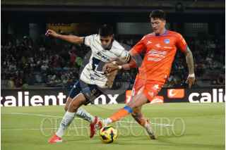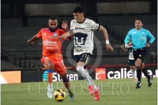 CIUDAD DE MÉXICO, 09FEBRERO2025.- Jugadores de Pumas celebraron el gol anotado por el centro campista Piero Quispe contra el equipo de Mazatlán durante la Jornada 6 de la Clausura 2025 en el Estadio Olímpico Universitario. FOTO: GRACIELA LÓPEZ/CUARTOSCURO.COM