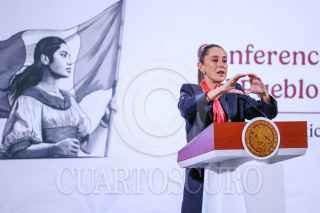 CIUDAD DE MÉXICO, 10ENERO2025.- Edna Vega Rangel, titular de la SEDATU, muestra el plan nacional de vivienda y como se configurará en la República Mexicana, durante la mañanera del pueblo. FOTO: MOISÉS PABLO/CUARTOSCURO.COM