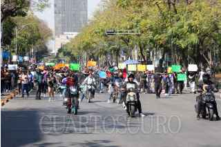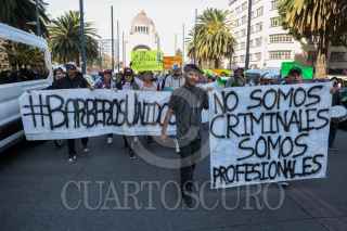 CIUDAD DE MÉXICO, 10FEBRERO2025.- Trabajadores de barberías marcharon del Monumento a la Revolución para exigir un alto al Operativo Atarraya que está siendo implementado por la Fiscalía General de Justicia del Estado de México y el Gabinete de Seguridad con el cuál se han cerrado más de 300 barberías en la entidad mexiquense con el argumento de ser puntos de operaciones criminales. Los inconformes han denunciado con videos que supuestos policías les siembran droga para después inculparlos, llamaron a la Presidenta de México su intervención para detener este operativo y que garantice el desarrollo de su actividad económica la cual es totalmente licita, enfatizaron. FOTO: MOISÉS PABLO/CUARTOSCURO.COM