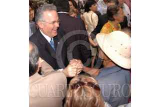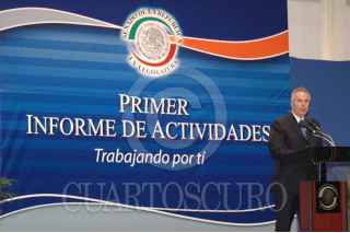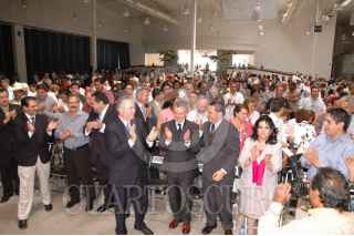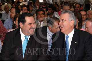 HERMOSILLO, SONORA, 05OCTUBRE2007.- El senador Javier Castelo y Santiago Creel Miranda, Coordinador de Mesa Directiva del Senado, durante el primer informe de actividades de Castelo ante decenas de sonorensa. FOTO: IGNACIO GONZÁLEZ/CUARTOSCURO.COM