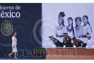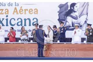 TULKUM, QUINTANA ROO, 10FEBRERO2025.- Claudia Shienbaum, Presidenta de Mèxico, encabezó el110 Aniversario de la Fuerza Aérea Mexicana, en la Base Aérea Militar 20. Durante la ceremonia se realizó un espectáculo aéreo por parte del personal militar. FOTO: ELIZABETH RUIZ/CUARTOSCURO.COM