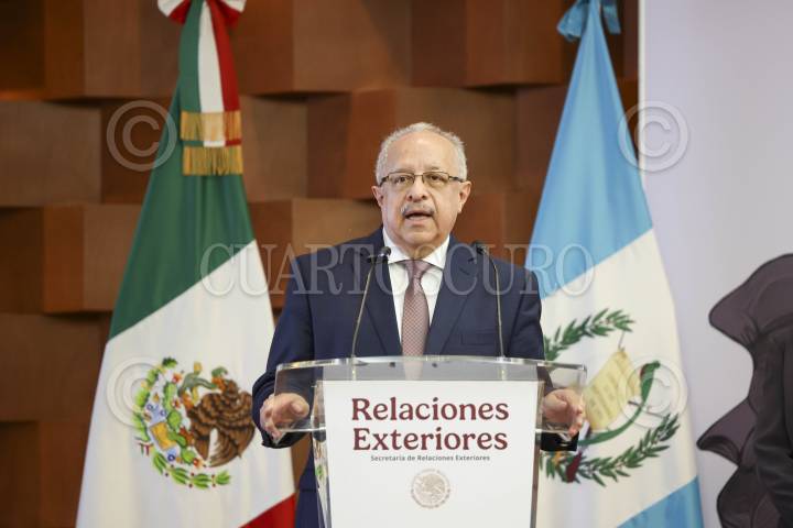 CIUDAD DE MÉXICO, 10FEBRERO2025.- Carlos Ramiro Martínez, ministro de Relaciones Exteriores de Guatemala, durante la ceremonia en la cual el gobierno mexicano le hizo entrega seis piezas prehispánicas que fueron sustraídas de su país de forma ilegal y que logro recuperar. FOTO: MOISÉS PABLO/CUARTOSCURO.COM