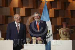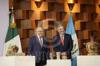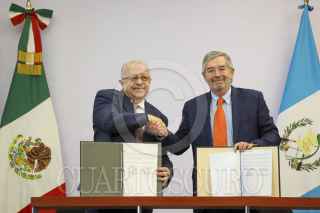 CIUDAD DE MÉXICO, 10FEBRERO2025.- Juan Ramón de la Fuente, secretario de Relaciones Exteriores (SRE), y Carlos Ramiro Martínez, ministro de Relaciones Exteriores de Guatemala, firmaron un acuerdo de colaboración en materia de restitución de piezas prehispánicas. El gobierno mexicano le hizo entrega al funcionario guatemalteco seis piezas recuperadas en diferentes operativos. FOTO: MOISÉS PABLO/CUARTOSCURO.COM