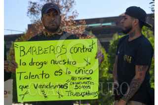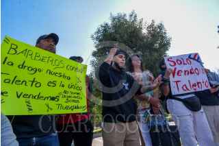 TOLUCA, ESTADO DE MÉXICO, 10FEBRERO2025.- Dueños y empleados de barberías de Toluca y Metepec se manifestaron frente a Palacio de Gobierno en protesta por los cierres de sus negocios derivado del Operativo Atarraya que se realizó el fin de semana, denunciaron diversas irregularidades en el operativo entre ellos que les fue sembrada droga y en redes sociales exhibieron a través de videos al personal de la FGJEM en donde se puede observar cómo tiran envoltorios, piden al gobierno estatal se actúe con legalidad y se deje de fabricar delitos ya que temen por su seguridad. FOTO: CRISANTA ESPINOSA AGUILAR /CUARTOSCURO.COM