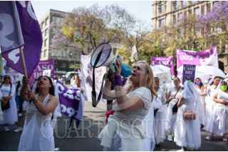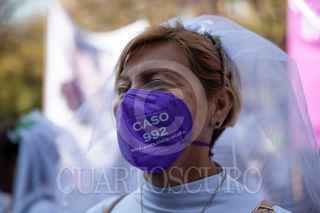 CIUDAD DE MÉXICO, 11FEBRERO2024.- Este martes se llevó a cabo una protesta en la que decenas de mujeres víctimas de violencia vicaria pidieron a la Suprema Corte de Justicia de la Nación (SCJN) atraer un caso con el que se busca que los ministros modifiquen criterios en la materia, con el fin de obligar al Estado mexicano a proteger a las madres y a sus hijos que sufren ese tipo de maltrato. El colectivo Las novias caso 992 se manifestaron de manera pacífica frente a la Suprema Corte de Justicia de la Nación para presenta el recurso AMICUS CURIAE ante la como evidencia de la falta de justicia hacia las mujeres, a cargo de Ingrid Tapia, abogada constitucionalista. Durante la protesta a las afueras de la SCJN, la vocera del colectivo “Caso 992″, Ingrid Tapia (en la imagen), pidió que no se criminalice a las mujeres por resguardar la integridad de sus hijos y afirmó que están hartas de la persecución. FOTO: ANDREA MURCIA/CUARTOSCURO.COM