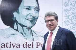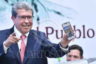 CIUDAD DE MÉXICO, 11FEBRERO2025.- Ricardo Monreal, diputado y coordinador de Morena en la Cámara de Diputados, durante la conferencia "Legislativa del Pueblo" en la que se compartió información sobre la Ley de No Reelección y Nepotismo; el presupuesto de elección del Poder Judicial y presentación de la agenda legislatura para las próximas sesiones ordinarias en la cámara baja. En la imagen, Monreal, muestra una foto junto a Adán Augusto López, senador y coordinador de Morena en la cámara alta, con quien asegura lleva una buena relación de amistad. FOTO: MARIO JASSO/CUARTOSCURO.COM