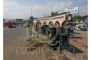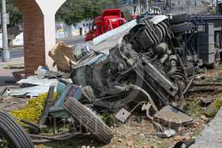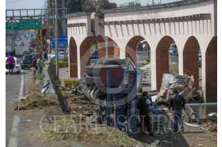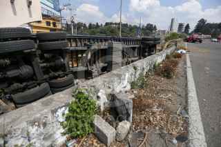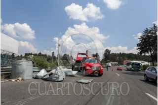 LERMA, ESTADO DE MÉXICO, 11FEBRERO2025.- Un tráiler volcó en la carretera México-Toluca a la altura de la comunidad de Amomolulco en Lerma, se registraron dos lesionados y diversos daños materiales, los cuerpos de emergencia resguardaron la zona para evitar otro accidente. FOTO: CRISANTA ESPINOSA AGUILAR /CUARTOSCURO.COM