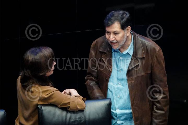 CIUDAD DE MÉXICO, 11FEBRERO2025.- La senadora panista Lilly Téllez conversa con el Gerardo Fernández Noroña, presidente de la Mesa Directiva del Senado, tras el termino de la sesión ordinaria de la Cámara de Senadores en el marco de la LXVI Legislatura. FOTO: GALO CAÑAS/CUARTOSCURO.COM