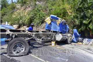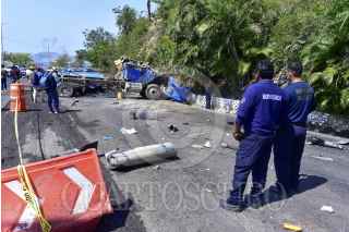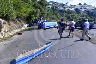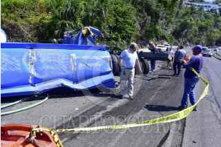 ACAPULCO, GUERRERO, 11FEBRERO2025.- Una pipa de agua volcó sobre la avenida Escénica de Acapulco, el chofer resultó lesionado y fue trasladado en una ambulancia al hospital. En esta importante vía del puerto son constantes los accidentes debido al exceso de velocidad con la que conducen automovilistas. FOTO: CARLOS CARBAJAL/CUARTOSCURO.COM