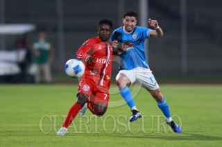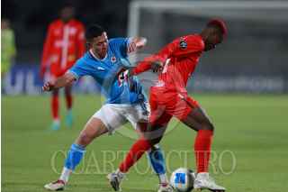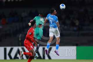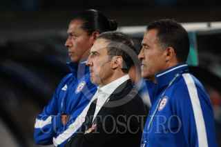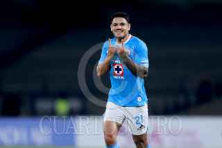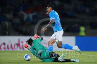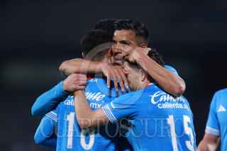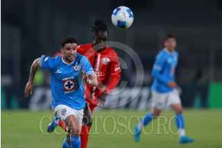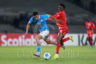 CIUDAD DE MÉXICO, 11FEBRERO2025. Ángel Sepúlveda se quita la marca de Huguens Michel durante el partido de fútbol Cruz Azul (MEX) vs Real Hope (HAI) correspondiente a la vuelta de la primera ronda en la Copa de Campeones Concacaf, disputado en el Estadio Olímpico Universitario. FOTO: EDGAR NEGRETE LIRA/CUARTOSCURO.COM