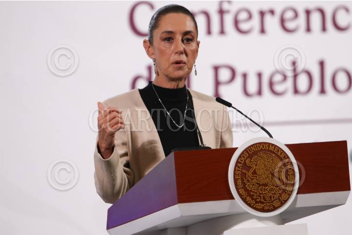 CIUDAD DE MÉXICO, 12FEBRERO2025.- Claudia Sheinbaum, presidenta de México, señaló que en la reestructuración de Pemex no se tienen previstos recortes de personal en las áreas operativas. Además, informó que se estudian planes para la generación de hidroeléctricas sin presas como parte de las estrategias energéticas. FOTO: GUSTAVO ALBERTO/CUARTOSCURO.COM