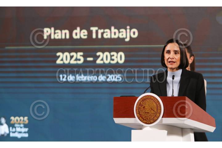 CIUDAD DE MÉXICO, 12FEBRERO2025.- Luz Elena González, secretaria de Energía, presentó el plan de trabajo de hidrocarburos 2025-2030, que implementará Pemex. Durante su intervención, informó que los legisladores trabajan en reformas constitucionales para modificar la normatividad de la empresa y del sector, con el objetivo de mejorar su eficiencia, capacidad e integración vertical y horizontal. FOTO: GUSTAVO ALBERTO/CUARTOSCURO.COM