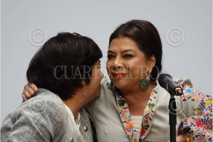CIUDAD DE MÉXICO, 12FEBRERO2025.- Edna Elena Vega Rangel, secretaria de Sedatu, y Clara Brugada, jefa de Gobierno, se saludaron durante la firma de convenio del Programa de Vivienda para el Bienestar realizada en el Palacio del Ayuntamiento. FOTO: GRACIELA LÓPEZ/CUARTOSCURO.COM